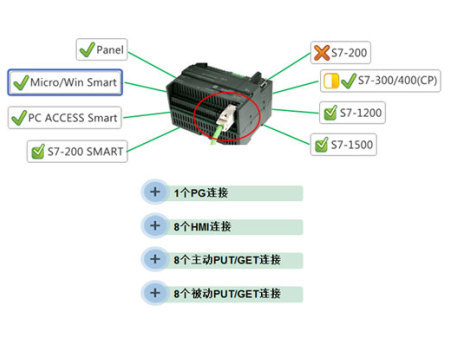 所有CPU 模块配备以太网接口,支持西门子S7 协议、有效支持多种终端连接:• 可作为程序下载端口(使用普通网线即可)